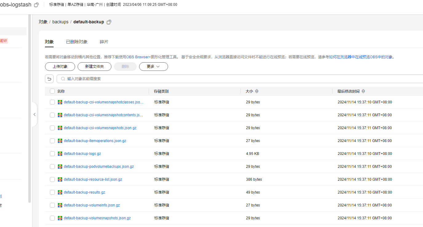 查看obs-logstash桶对象: