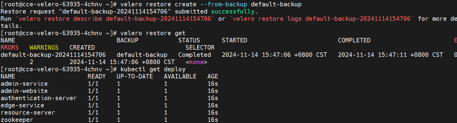演示通过velero进行恢复: