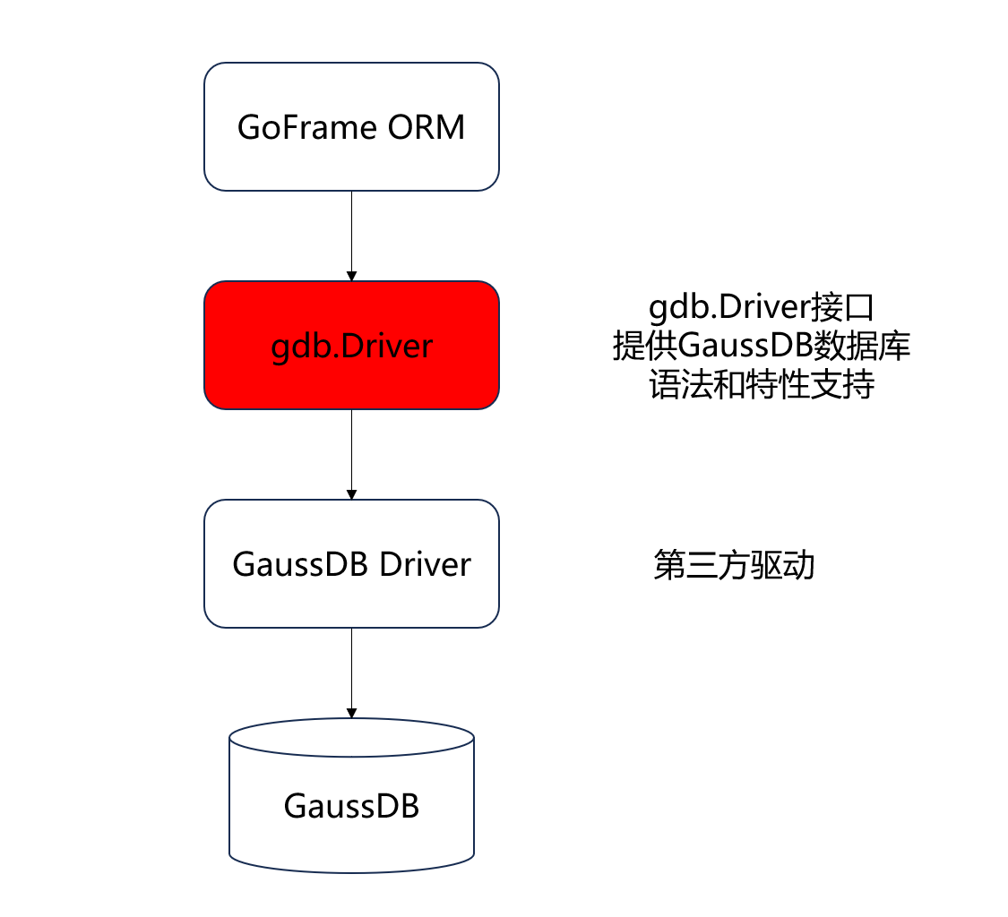 因此,如果要实现 gdb 操作 GaussDB 数据库,我们就需要实现一个 gdb.Driver 中间接口层,或者使用其它已有的 gdb.Driver 中间层,然后注册 GaussDB 数据库驱动类。