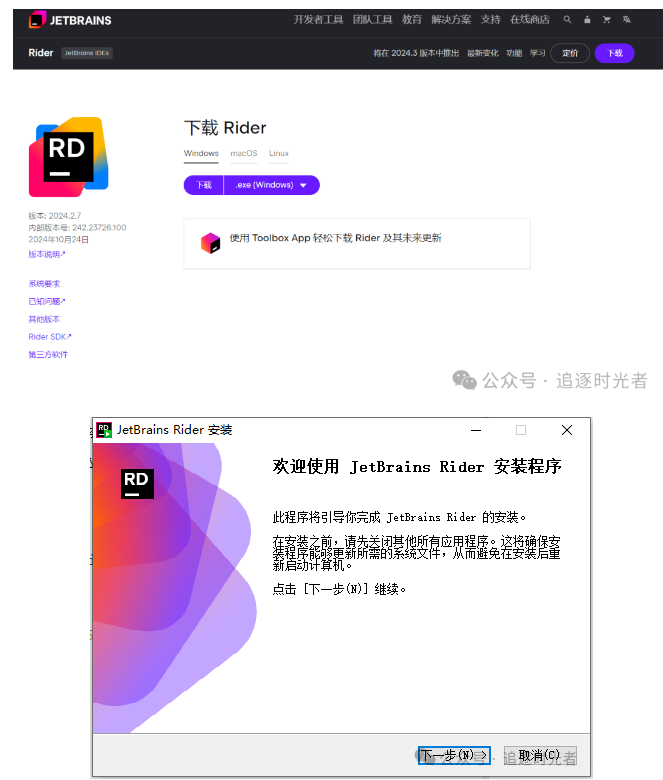 下载地址:https://www.jetbrains.com.cn/rider/download/#section=windows