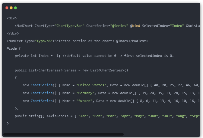 <MudText Typo="Typo.body1" Class="py-3">Selected: @(Index < 0 ? "None" : _series[Index].Name)</MudText>