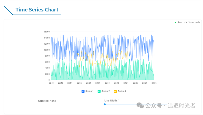<MudTimeSeriesChart ChartSeries="@_series" @bind-SelectedIndex="Index" Width="100%" Height="350px" ChartOptions="@_options" CanHideSeries TimeLabelSpacing="TimeSpan.FromMinutes(5)" />