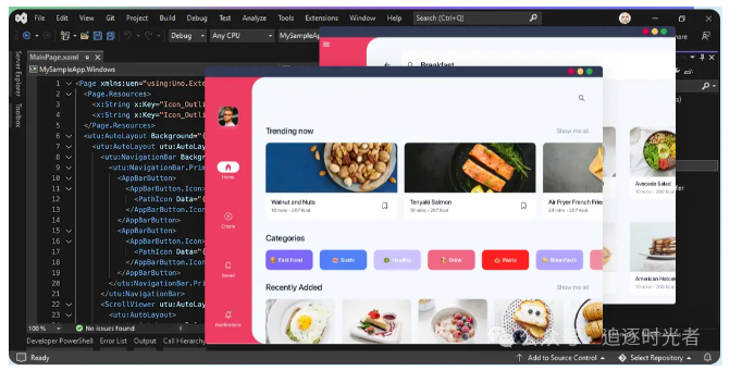 高效开发流程:Uno Platform 支持 XAML 热重载等特性,可以加速原型设计与迭代。同时,它与 Visual Studio 高度集成,提供了流畅的开发体验。