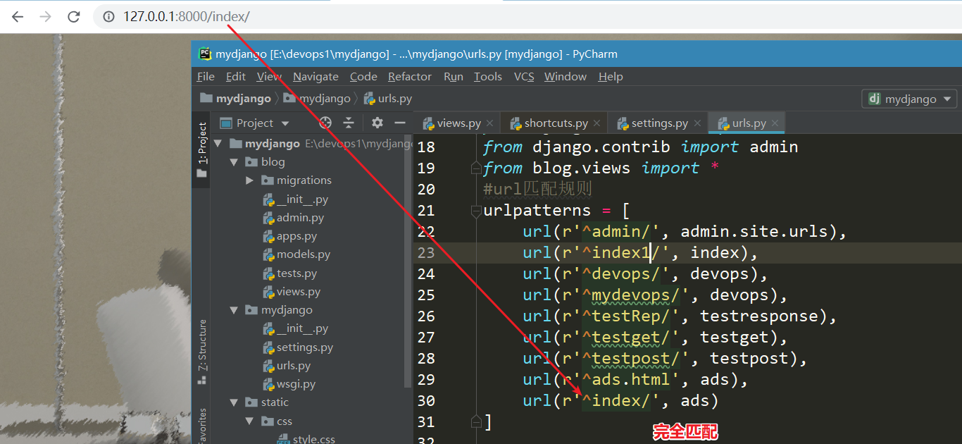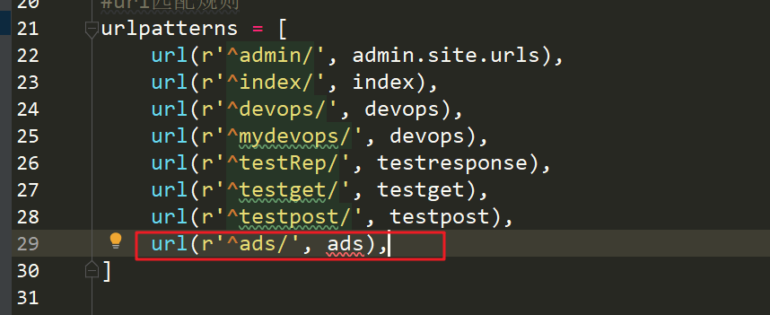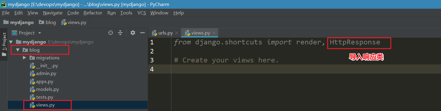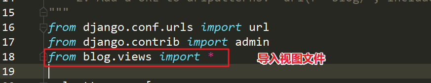 ②在urls.py中导入include,引入应用文件夹里的urls定义