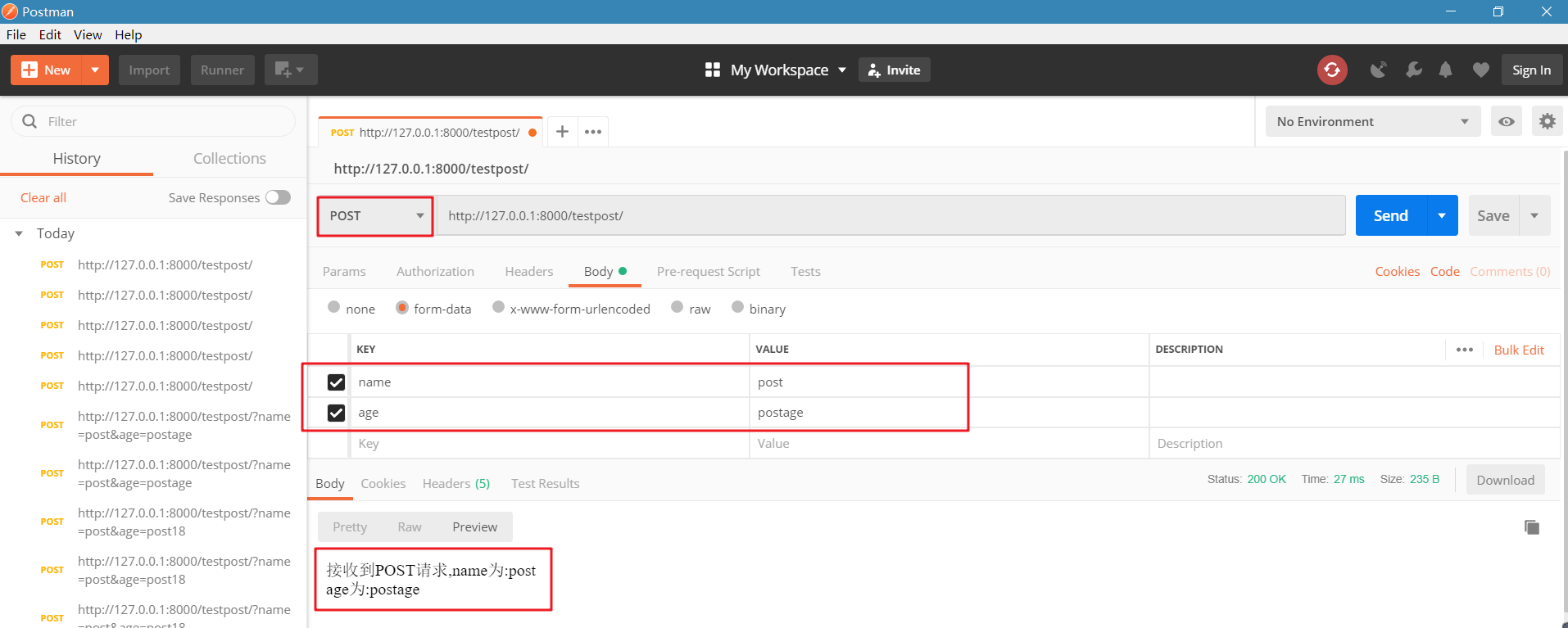 例:通过postman(接口调试工具)模拟发送POST请求,传输参数并把参数打印到页面