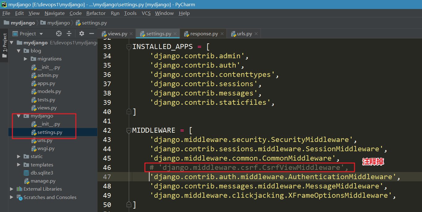 settings.py 包含了项目的默认设置,包括数据库信息,调试标志以及其他一些工作的变量。
