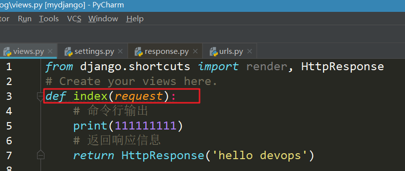 定义函数视图就跟定义一个函数是一模一样的,只是函数视图必须要接收一个参数request。
