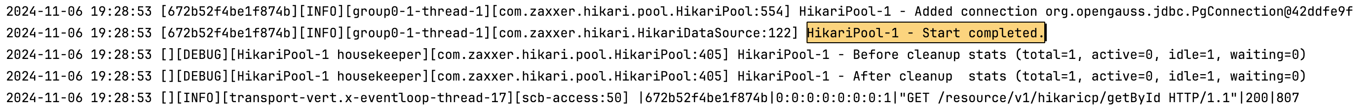 启用hikaricp的日志如下: