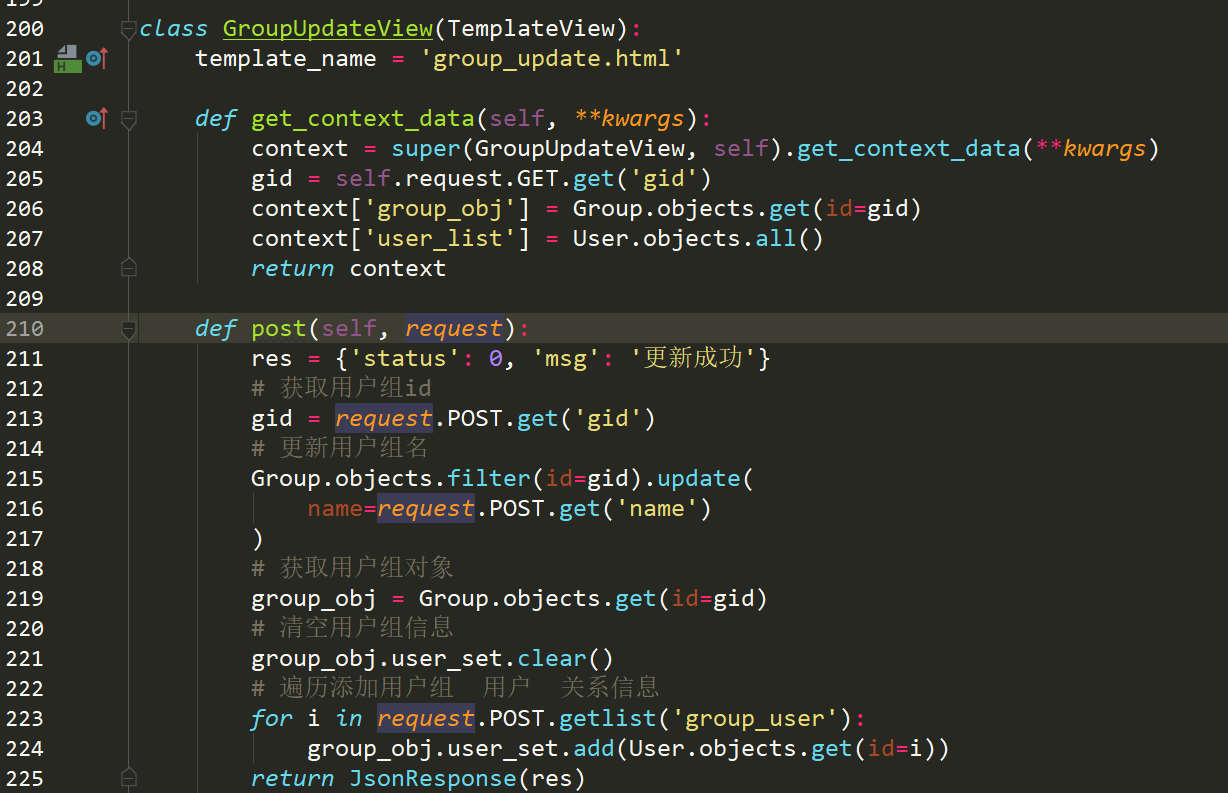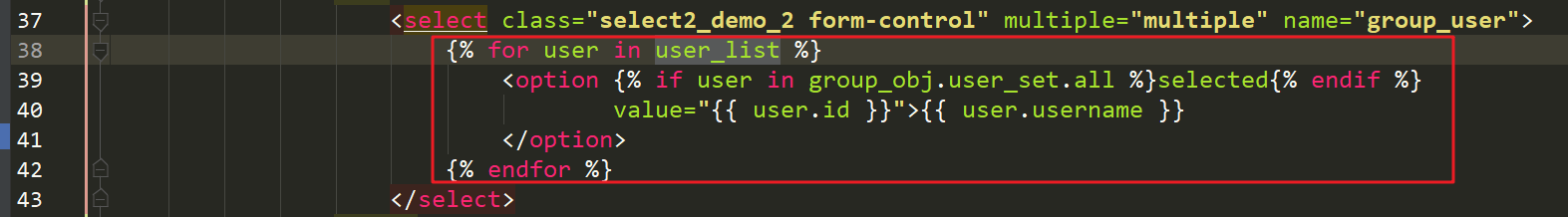更新用户组合更新用户类似,需要额外处理的是,回显用户列表,需要判断用户是否在用户组,如果在处理为下拉框选中状态。