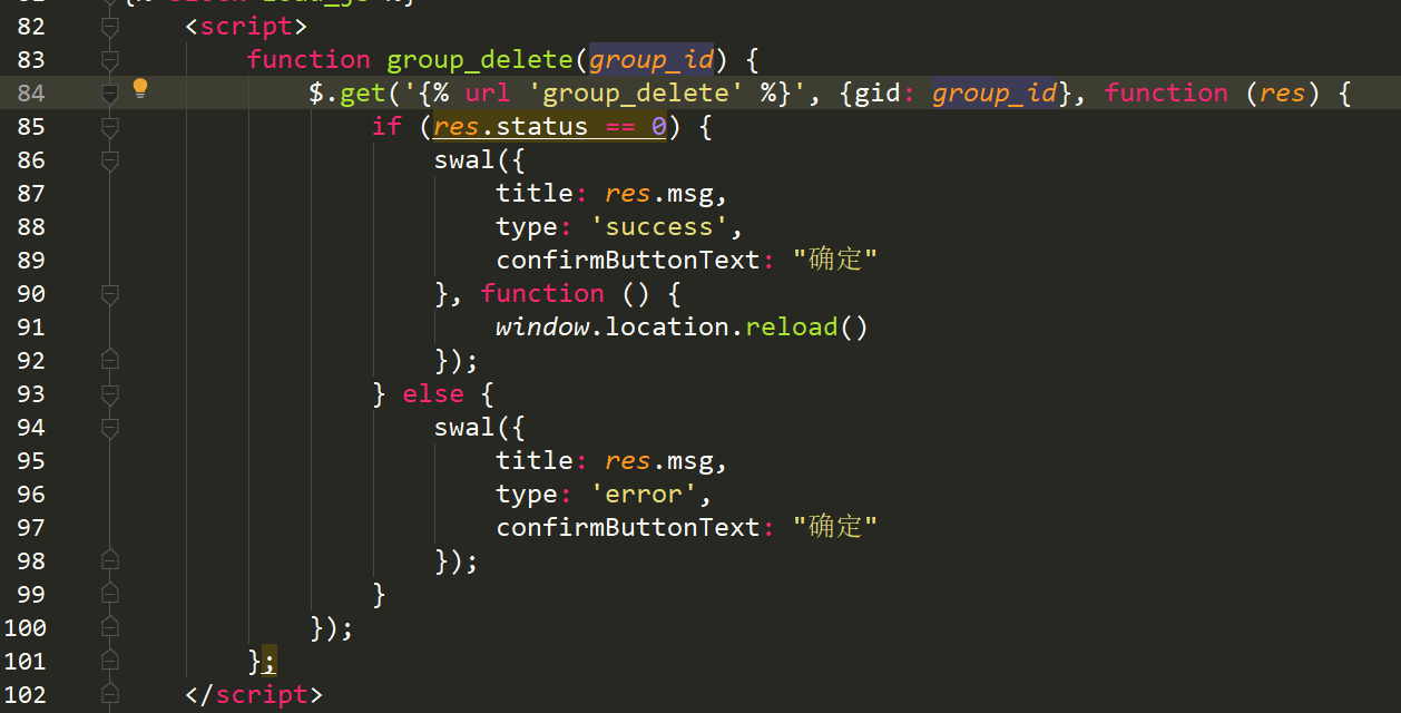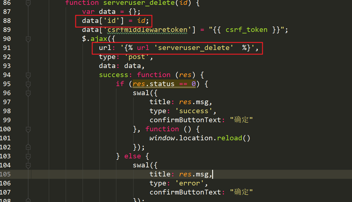 在列表页面绑定事件 通过按钮点击事件 触发删除js方法(发送数据给后端)