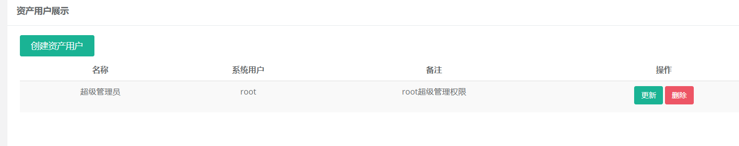 资产用户跟系统用户没关系,资产用户跟主机是有关系的。每台主机都需要账号密码,资产用户主要是针对主机去关联的。