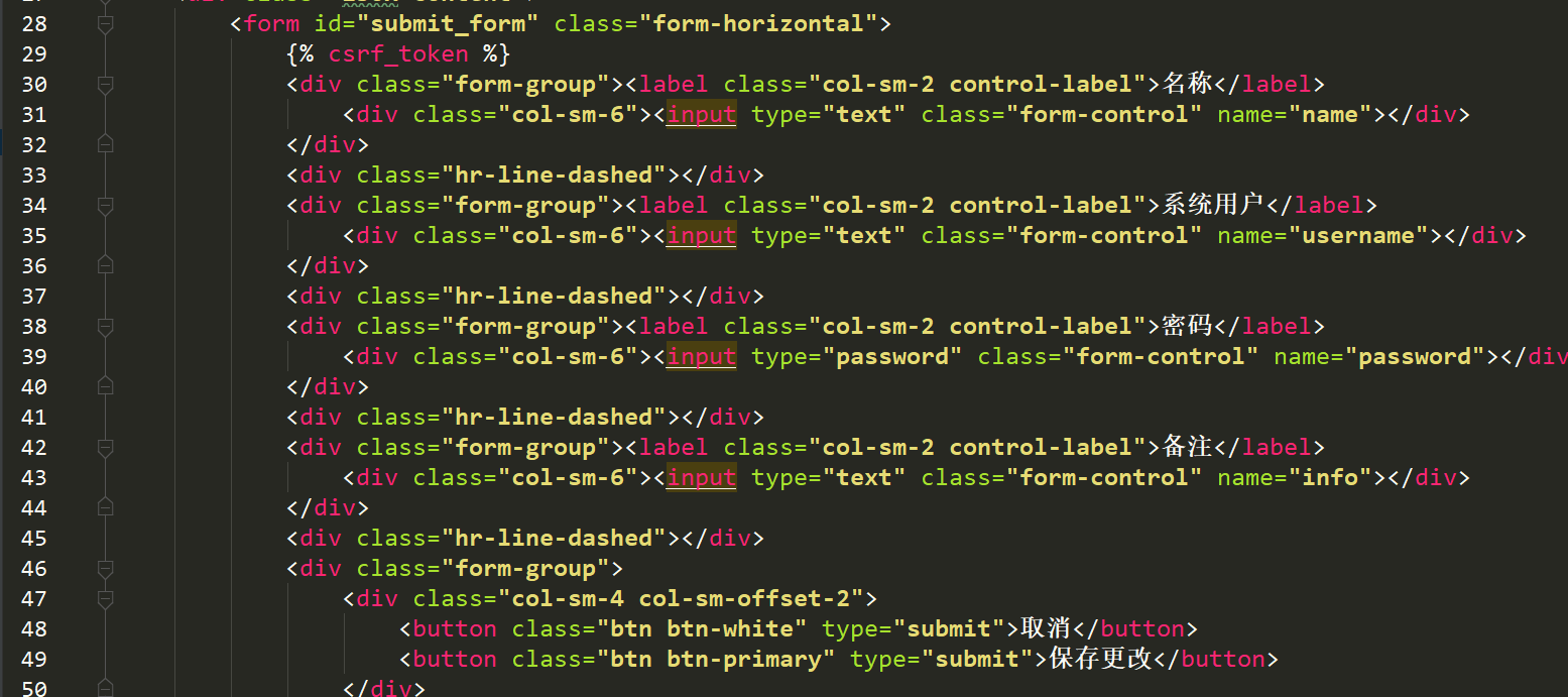 模型字段:名称、系统用户、系统密码、备注
