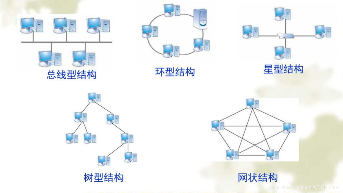 1. 按照拓扑分类:星型结构、树形结构、总线型结构、环形结构、网状结构