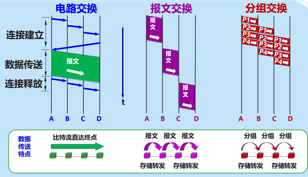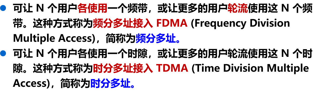 • 四种复用技术:频分复用FDM、时分复用TDM(统计时分多路复用STDM)、波分复用WDM、码分复用CDM