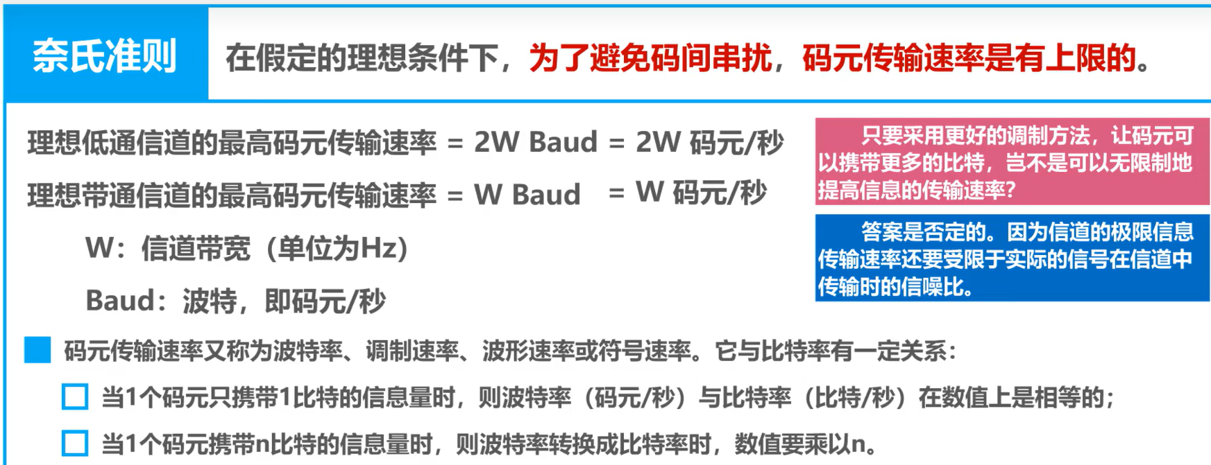 奈氏准则 设定 码元极限传输速率 , 香农定理 设定 数据极限传输速率 ;