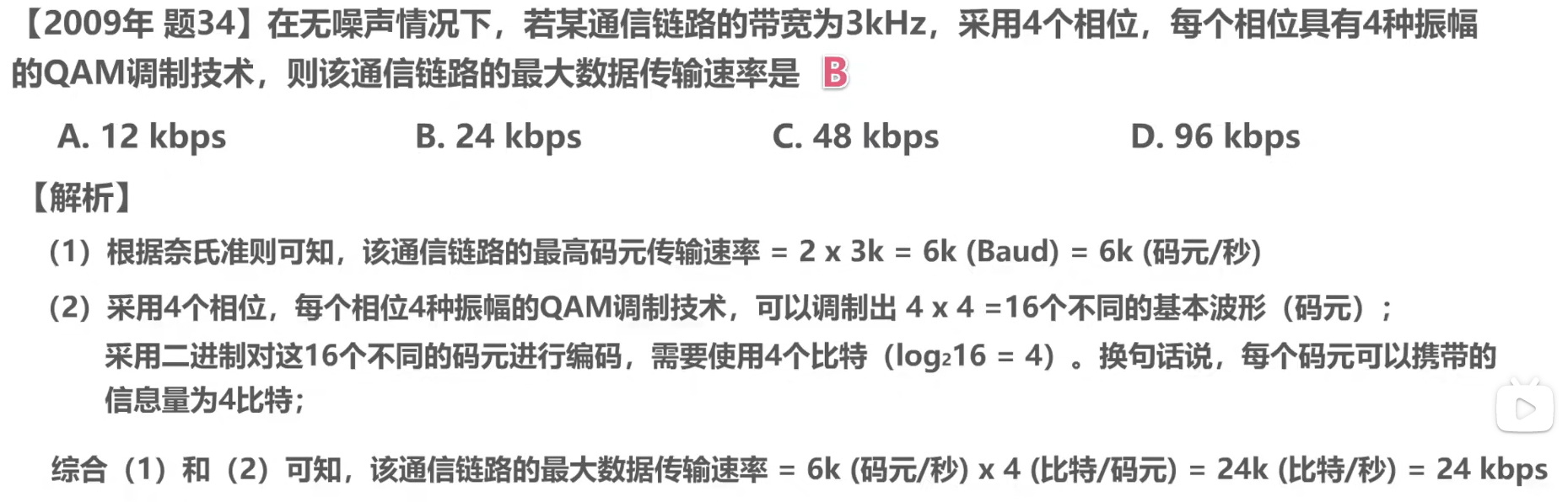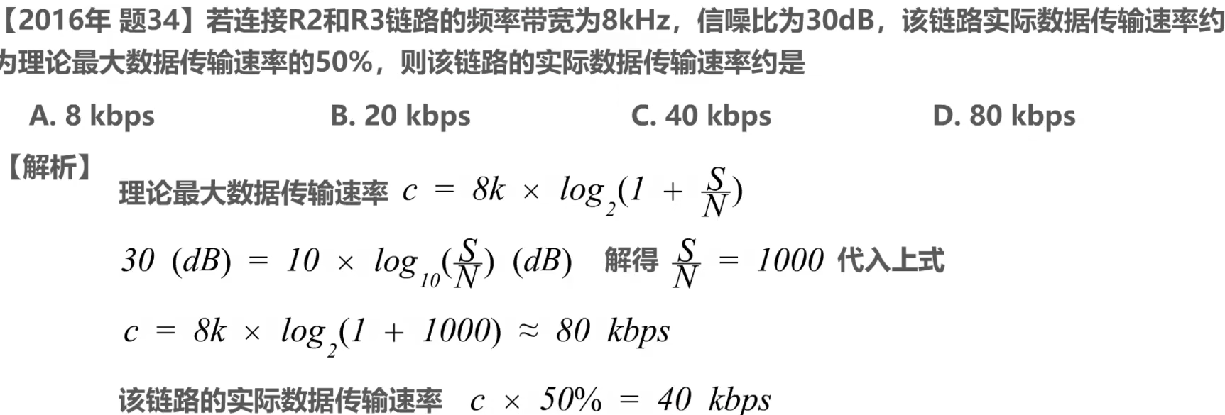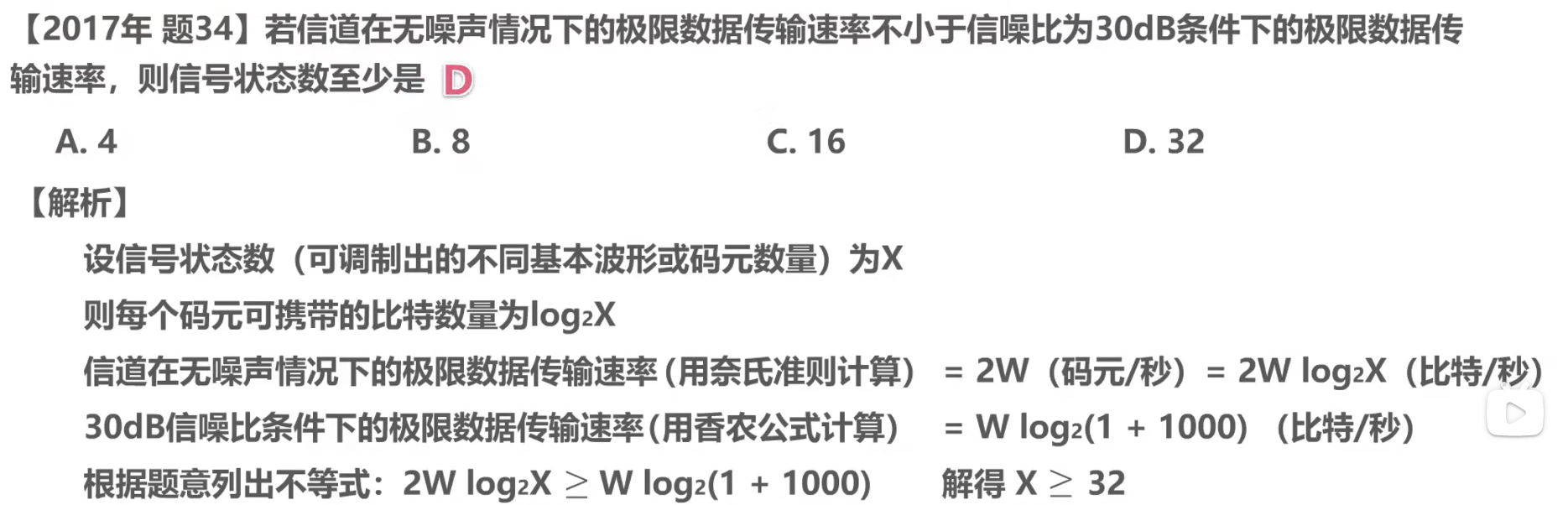 理想低通信道下最大数据传输速率=2W log2N bit/s