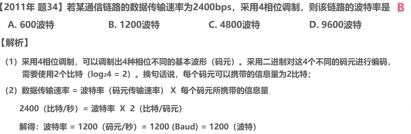 数据传输速率=波特率(码元传输速率)× 每个码元携带的信息量