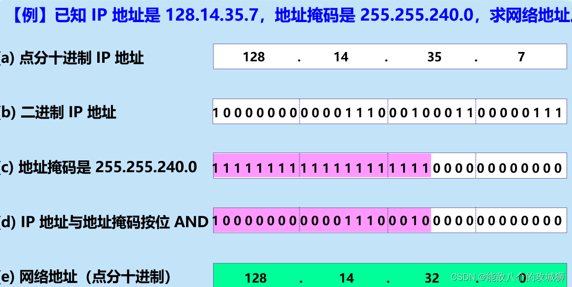 CIDR 使用“斜线记法”,例如:128.14.35.7/20,前 20 位是网络前缀(相当于原来的网络号),剩下 12 位是主机号。