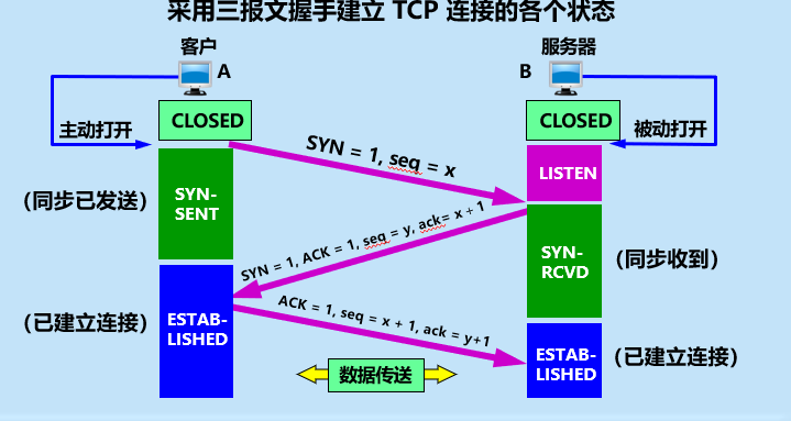 • TCP三次握手(建立连接)和四次挥手(释放连接):