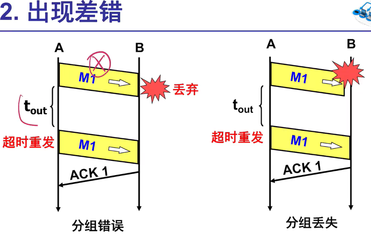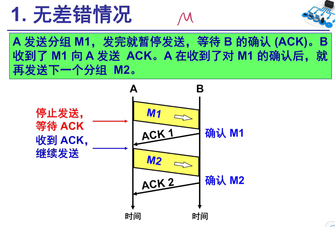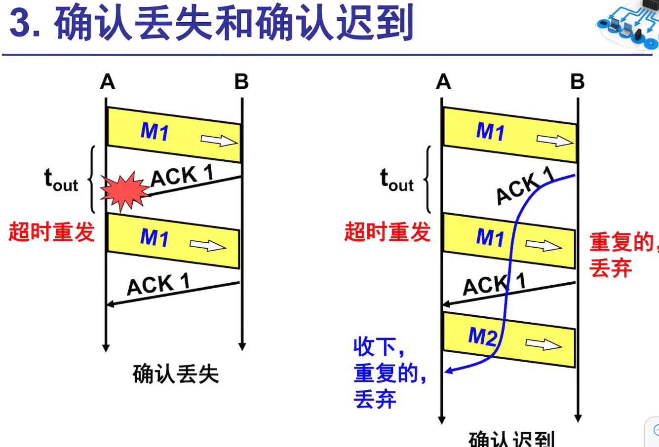 • 可靠传输工作原理:停止等待协议、连续ARQ协议