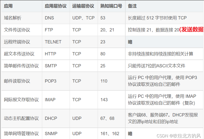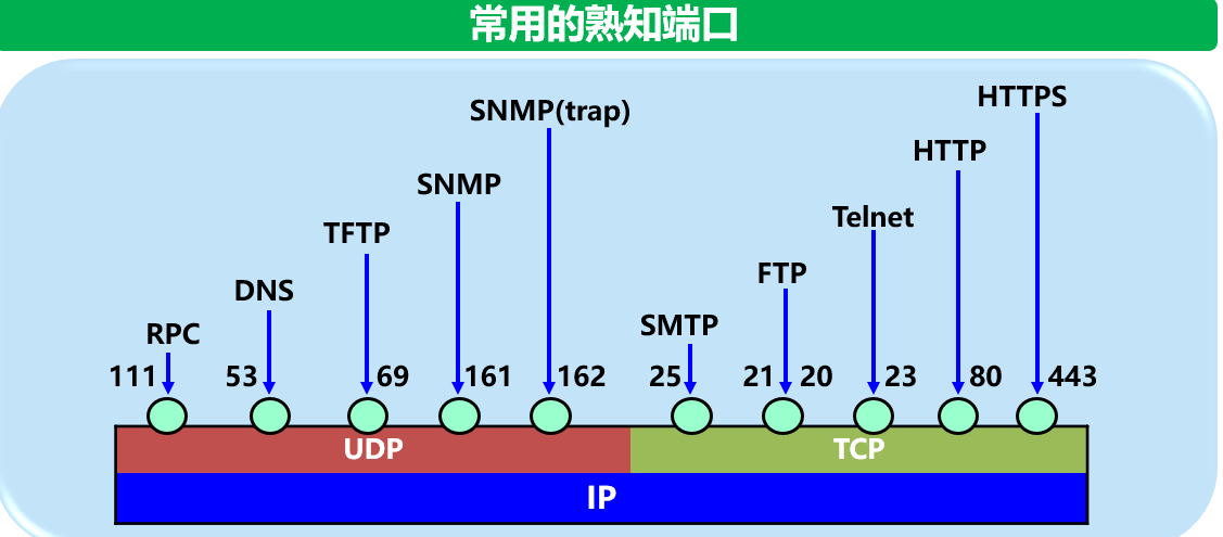 • 端口:实现复用和分用:服务器使用的端口号、客户端使用的端口号