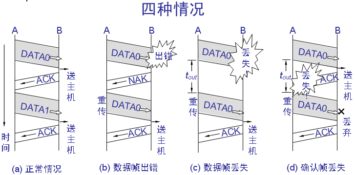 10. 用图来表示出停止等待协议的工作原理。