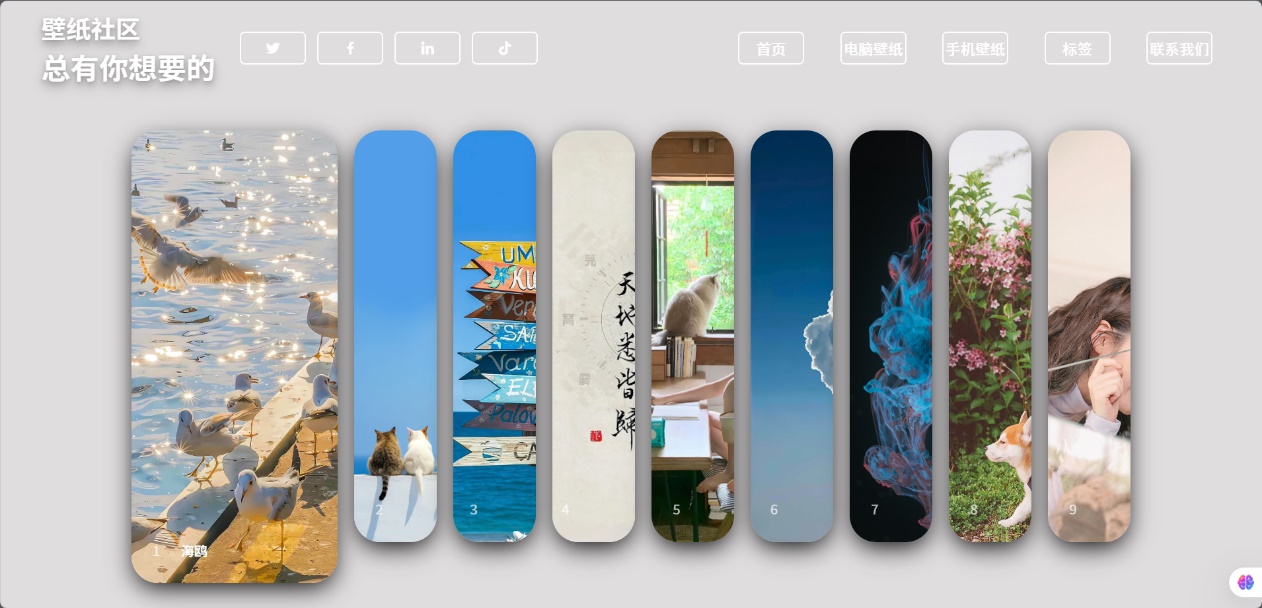 HTML结构:包含头部(header)、导航栏(navbar)和手风琴式结构的壁纸展示区。