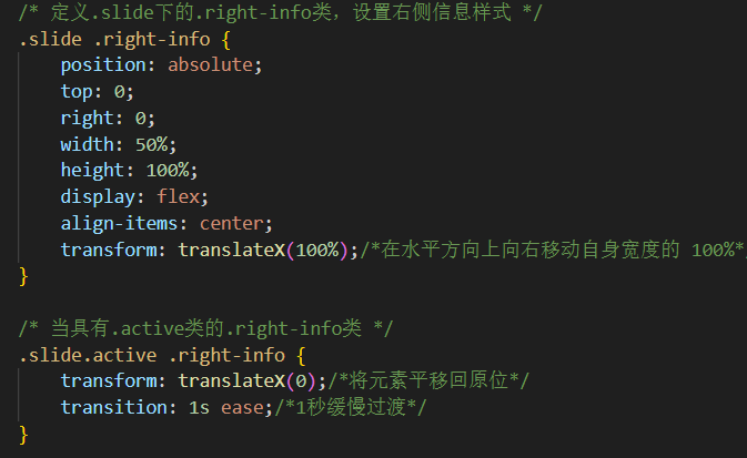 o left-info和right-info使用transform属性实现水平移动的过渡效果。