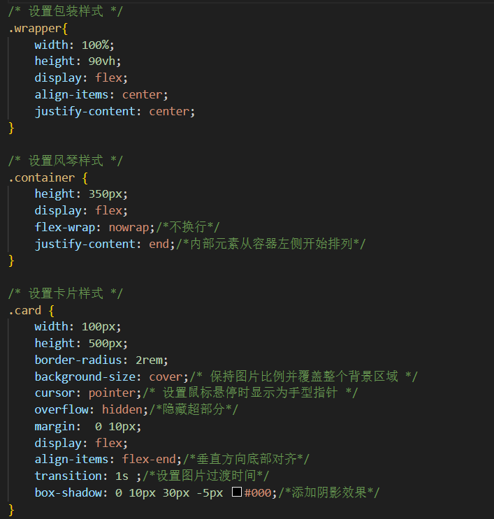 o 壁纸卡片的容器Container,设置为固定高度,使用flex布局使其子元素水平排列。