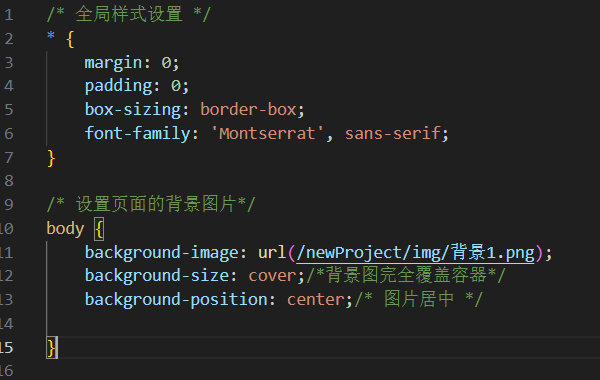 o 页面背景图像设置为覆盖整个容器并居中显示。