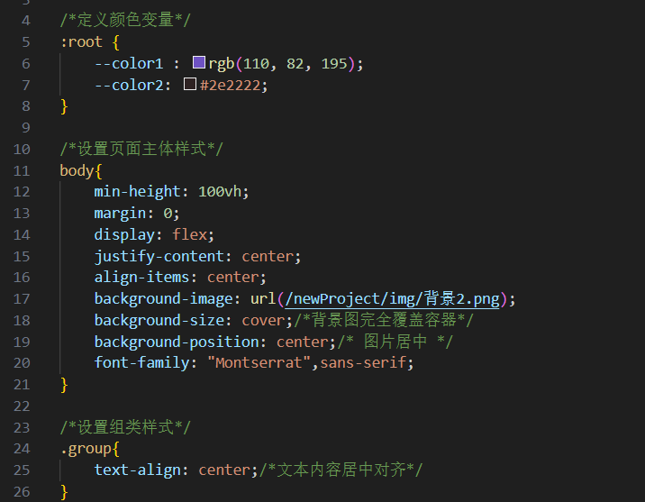 1) 自定义颜色变量与主体样式(body)、组样式(Group):