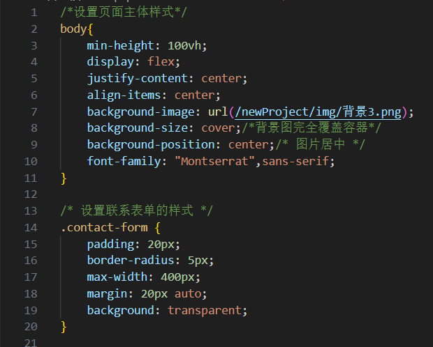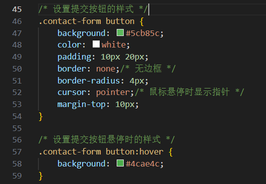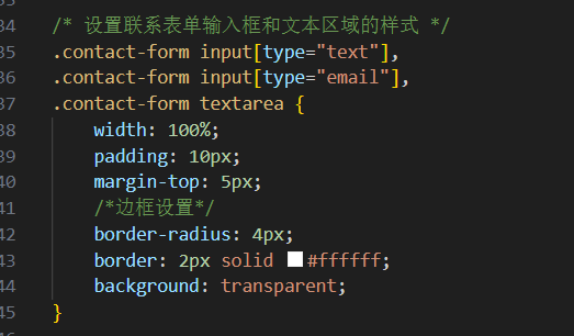 CSS样式设计:使用.contact-form来包裹表单并设置h2、label、input、textarea