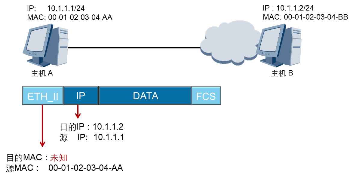 网络设备通过ARP报文来发现目的MAC地址。ARP报文中包含以下字段: