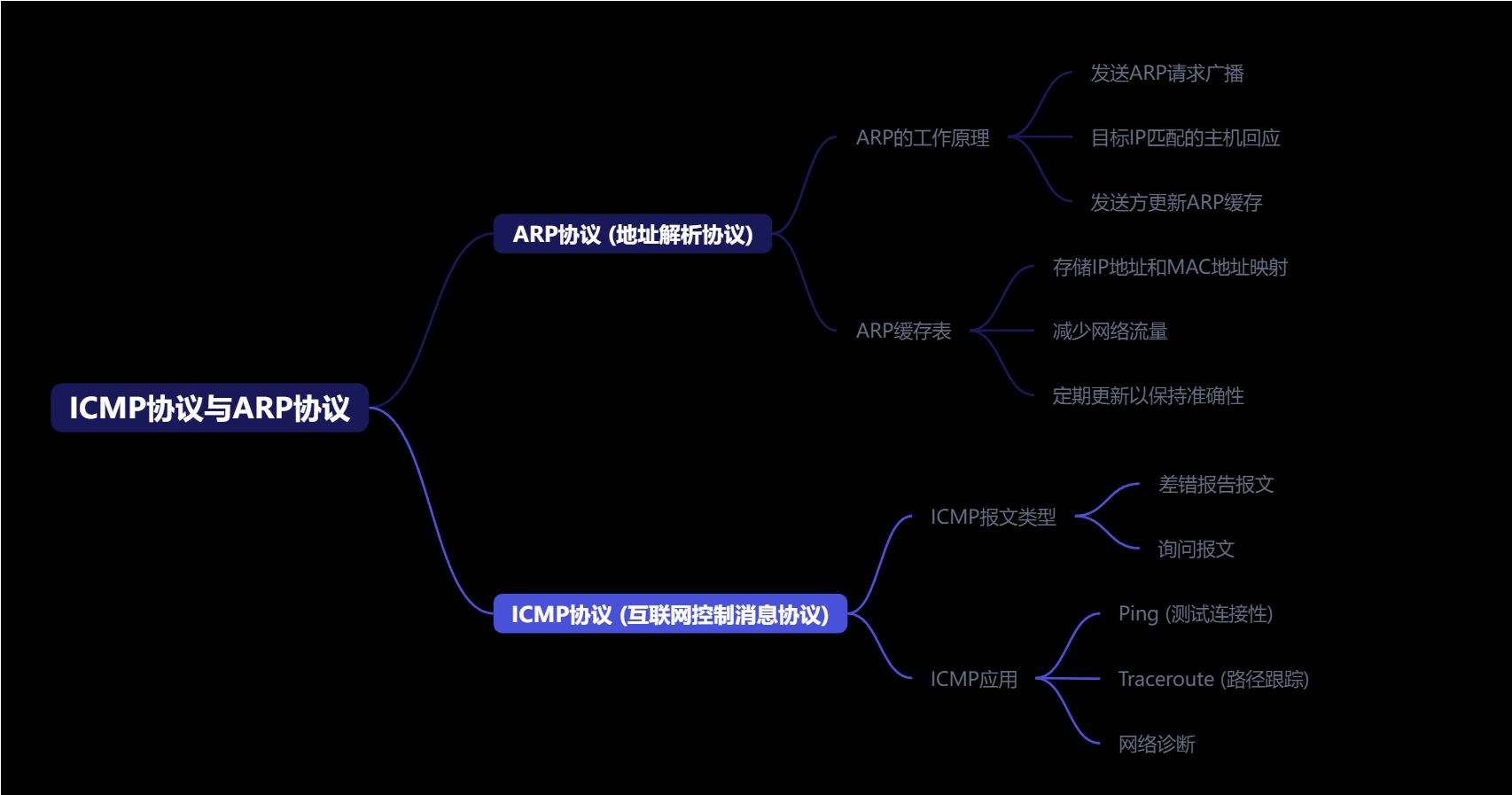 - 功能:ARP的主要功能是在局域网中通过广播请求的方式,将已知的IP地址映射到对应的MAC地址,以便数据包能够正确发送到目标设备。
