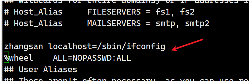 如下我授权xiaoming用户可以执行/sbin/目录下除了ifconfig和route以外的所有命令