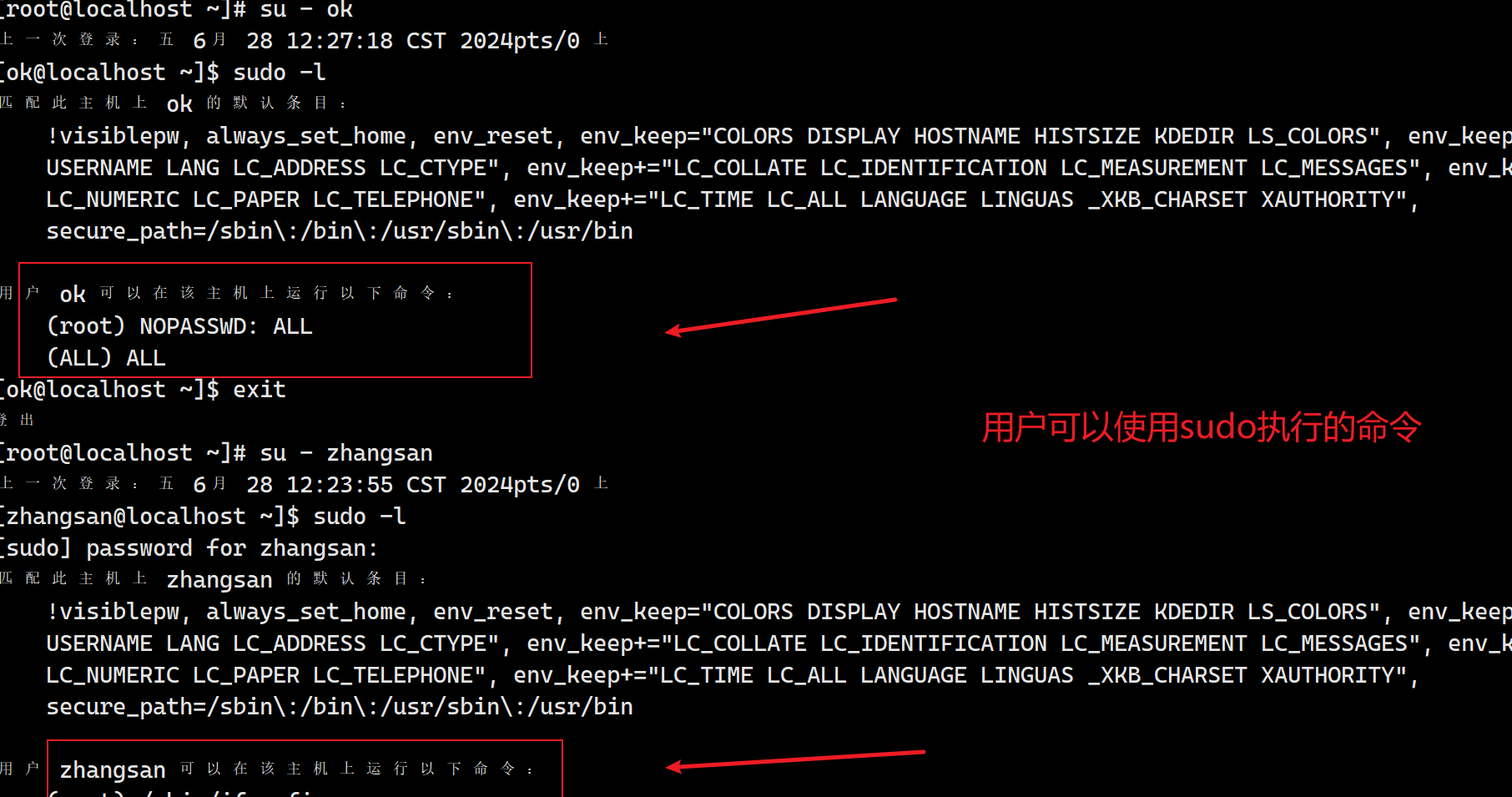 我切换到ok用户下使用sudo创建一个用户 查看sudo日志是否显示
