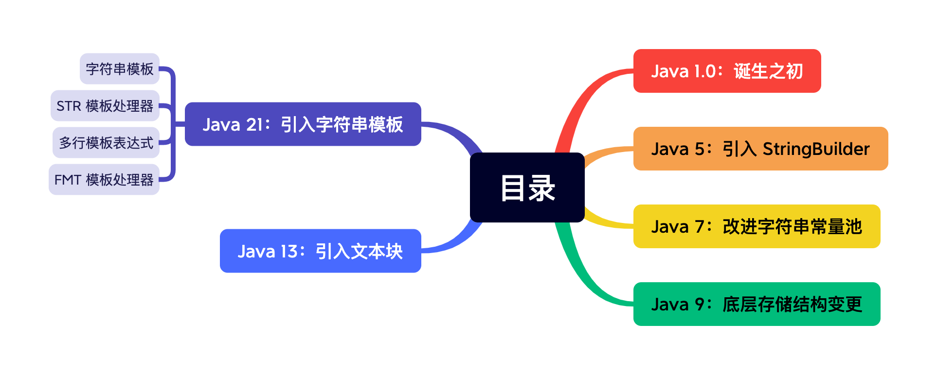 为了解决多行字符串处理的复杂性,Java 13 引入文本块(Java 13 新特性—文本块),它是使用三个双引号(""")来标记字符串的开始和结束,允许字符串跨越多行而无需显式的换行符或字符串连接。如下: