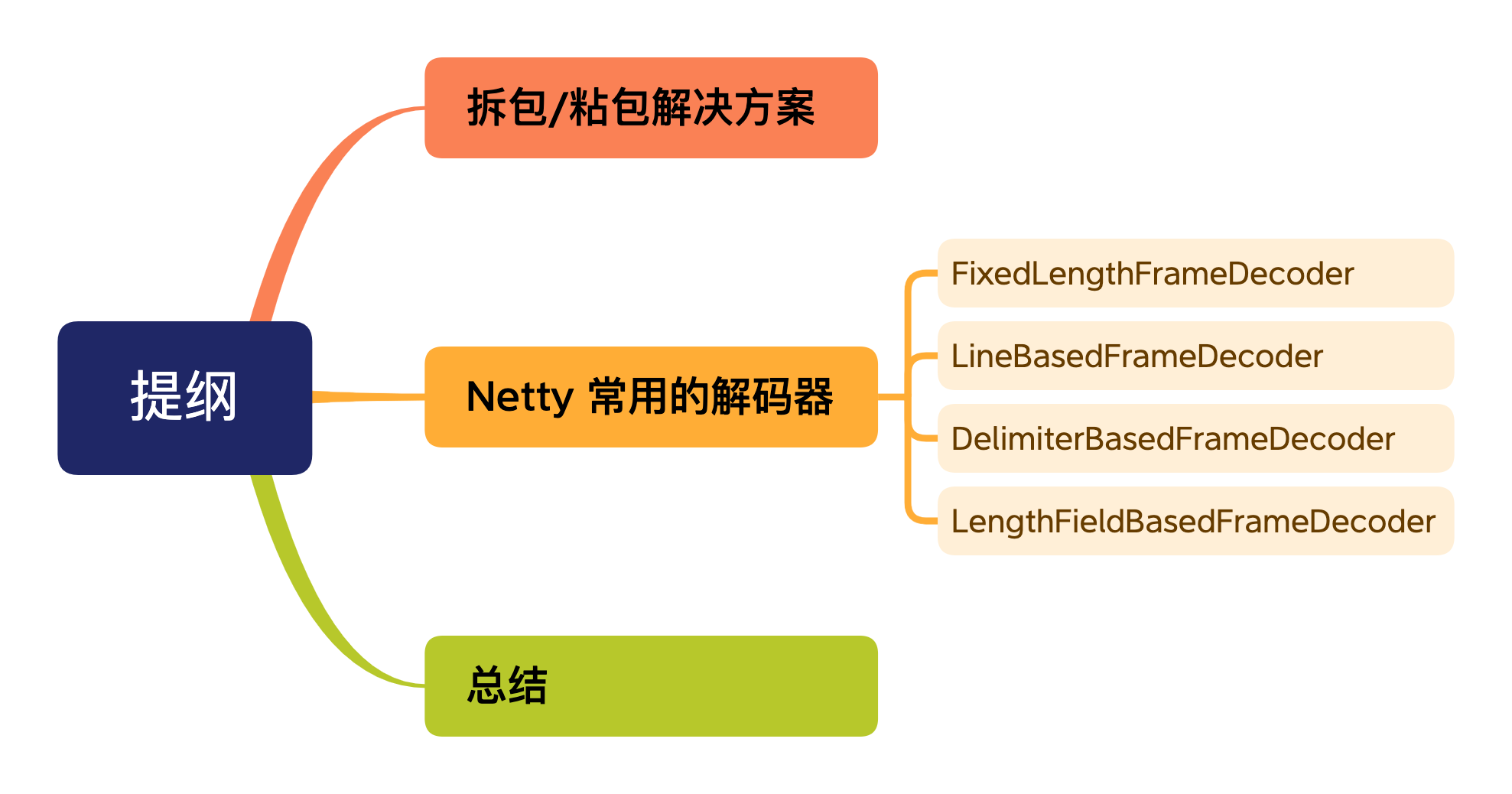 Netty 提供了几种开箱即用的解码器,这些解码器基本覆盖了 TCP 拆包/粘包的通用解决方案。