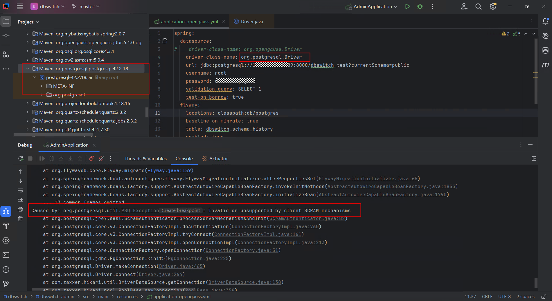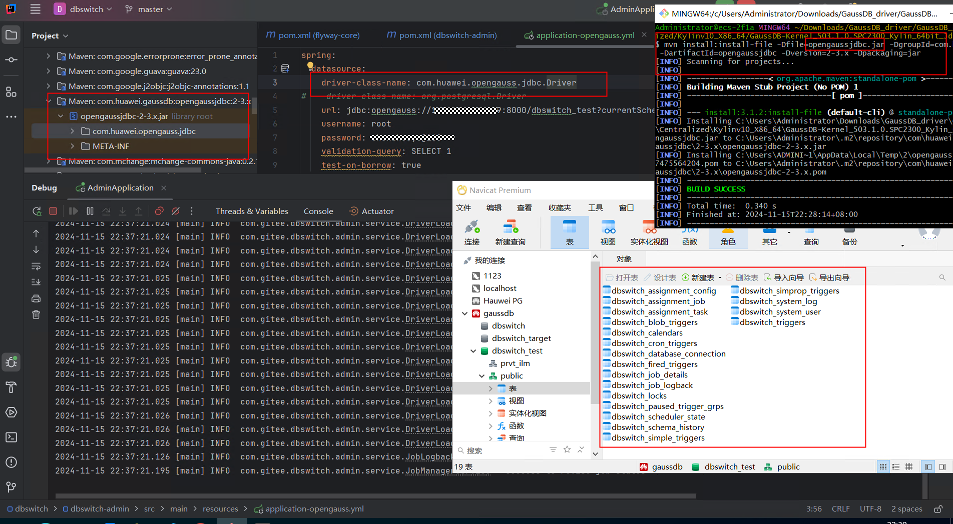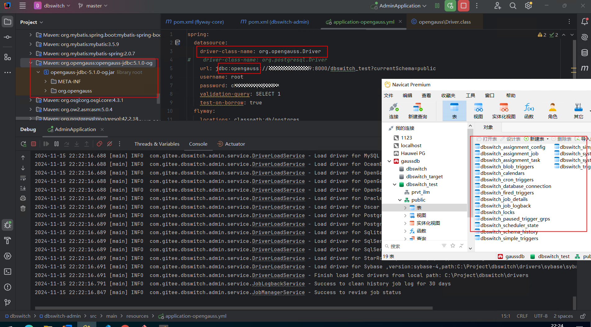 (4)使用GaussDB官网驱动opengaussjdbc.jar替换原生OpenGauss驱动验证;