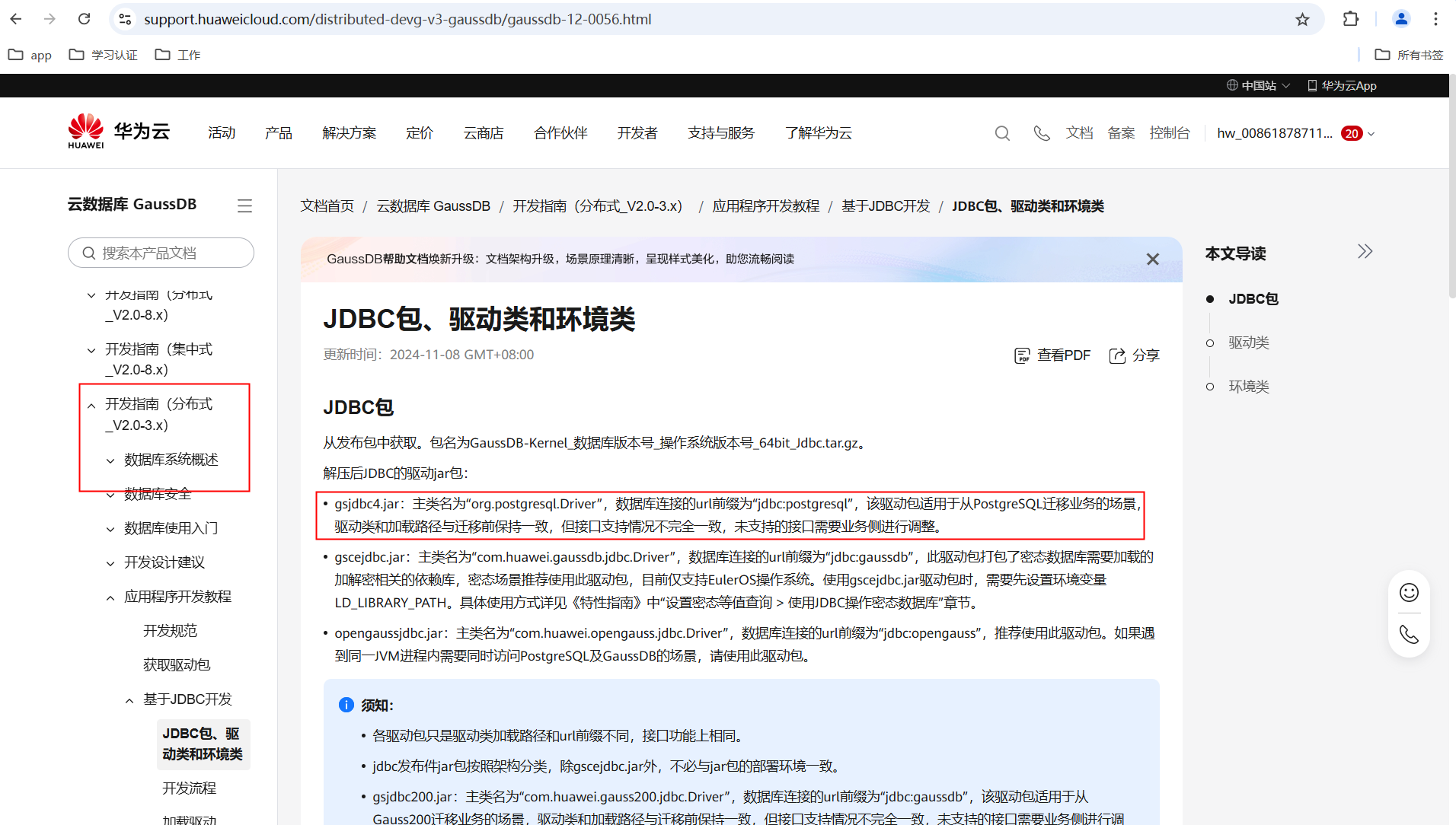 驱动地址:https://dbs-download.obs.cn-north-1.myhuaweicloud.com/GaussDB/1716950374370/GaussDB_driver.zip