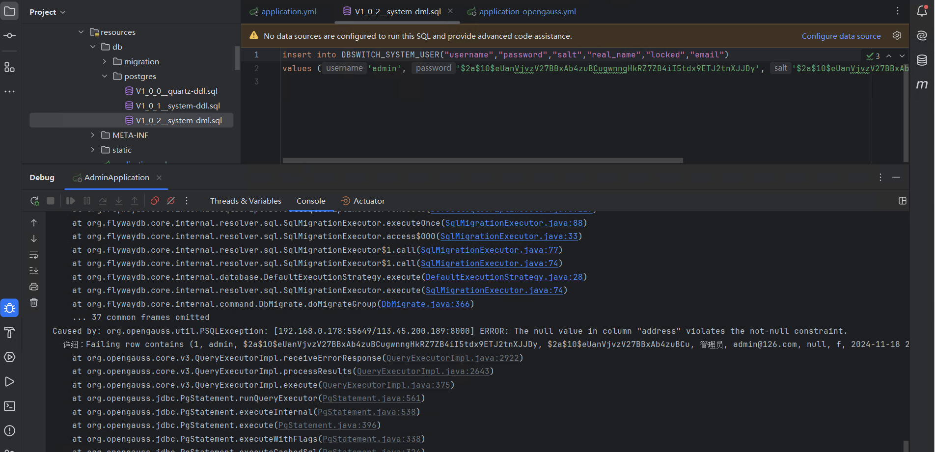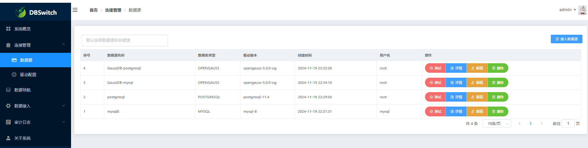 dbswitch-admin模块支持mysql,postgresql和opengauss。我们加入GaussDB去做验证。这个模块里面涉及启动脚本初始化,脚本地址:https://gitee.com/dromara/dbswitch/tree/master/dbswitch-admin/src/main/resources/db/postgres