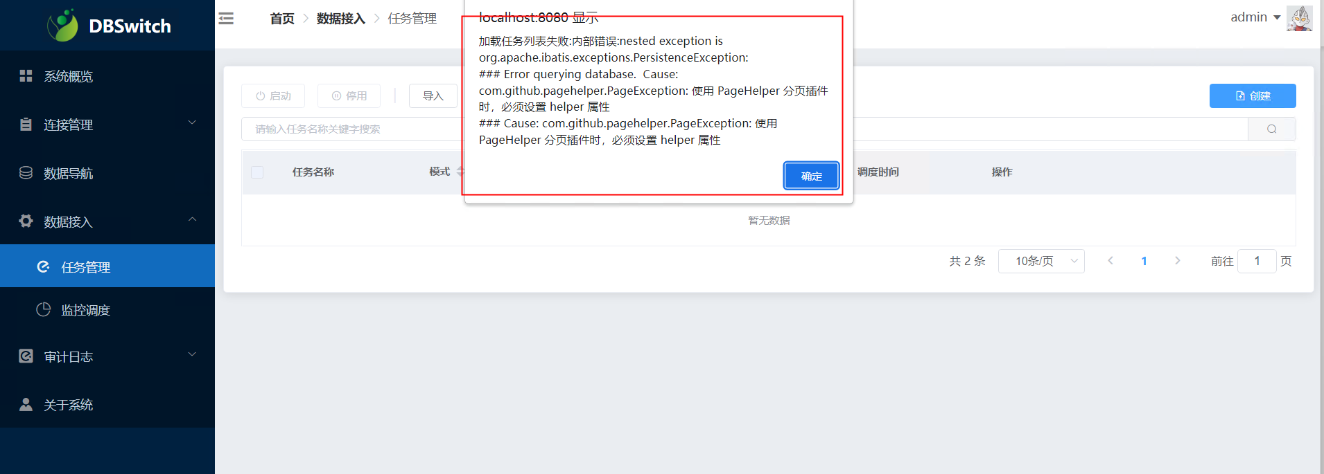 2) 基于conf/application.yml配置的dbswitch-admin模块启动