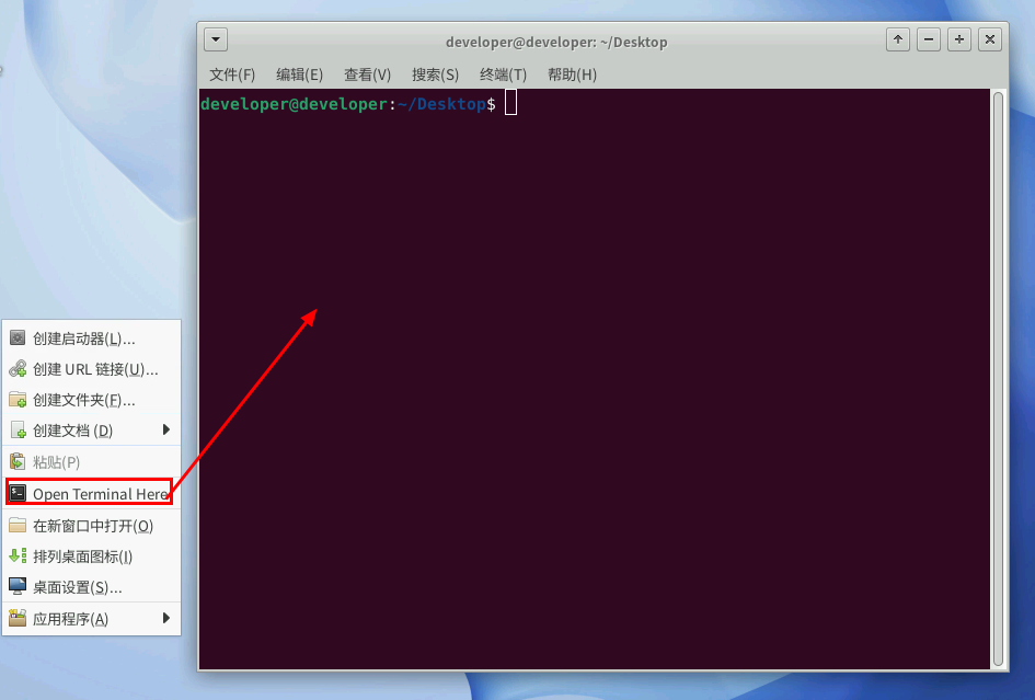 1、在下载的更新包目录下点击鼠标右键选择“Open Terminal Here”,打开命令终端窗口。