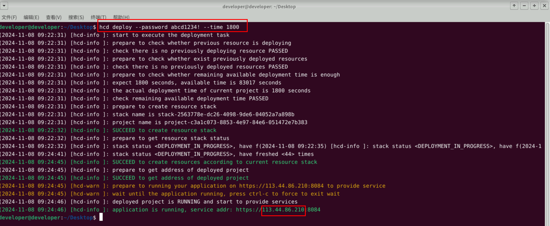 hcd deploy --password abcd1234! --time 1800
