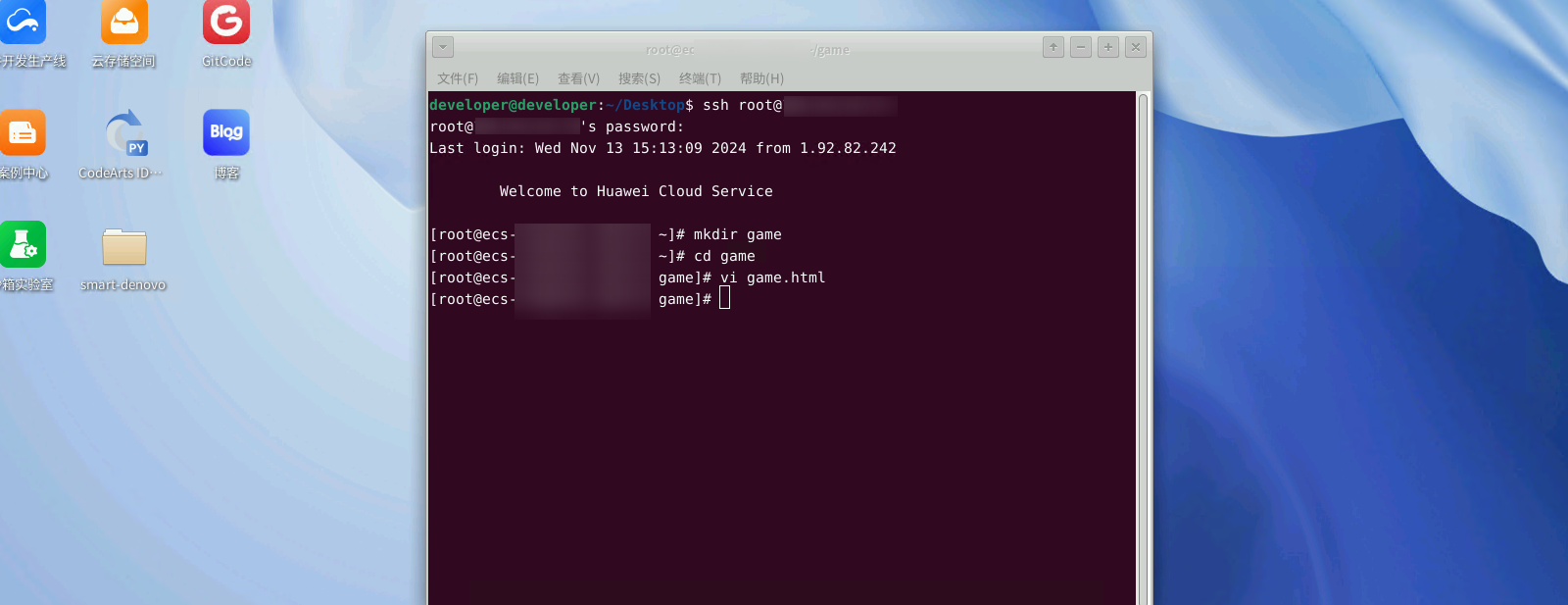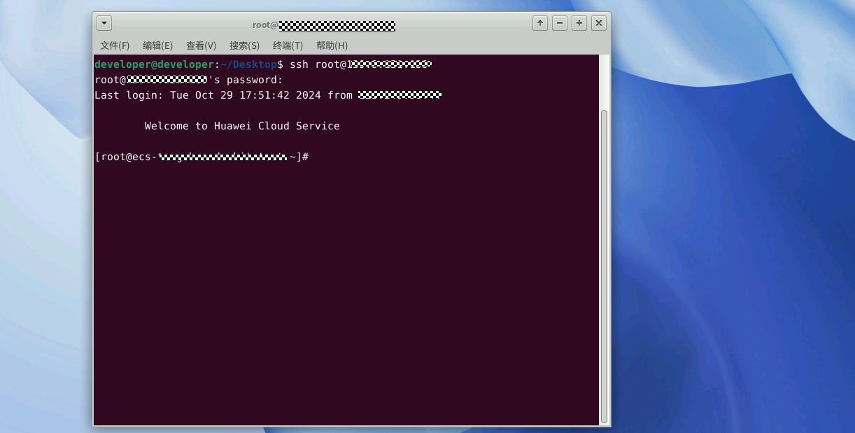 2、使用终端连接鲲鹏服务器;