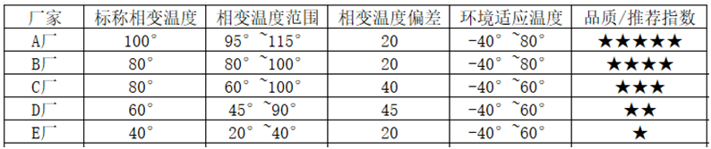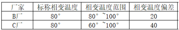 例如下表中,B厂和C厂都标称相变温度为80度,但是通过检测发现,C厂的钛丝相变温度偏差达到了40度。如果选择C厂的钛丝,在实际应用中就容易导致产品出现不稳定的现象。
