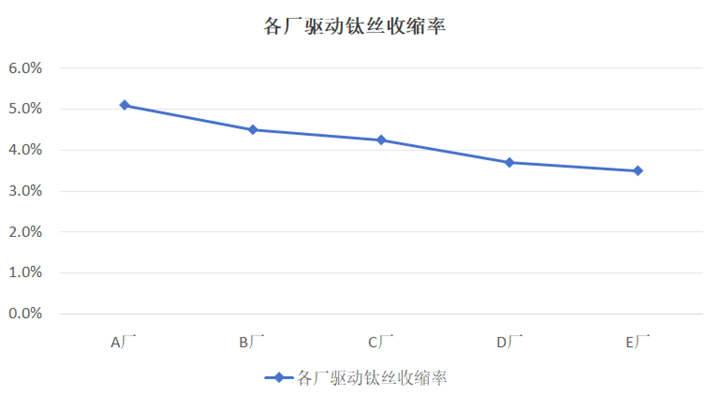 3、最后说下钛丝的位移收缩率,财哥测试了市场上常见的钛丝,发现不同厂家的钛丝通电收缩位移是不一样的,从3.7%、4%、4.3%、4.7%、5%、>5%不等。