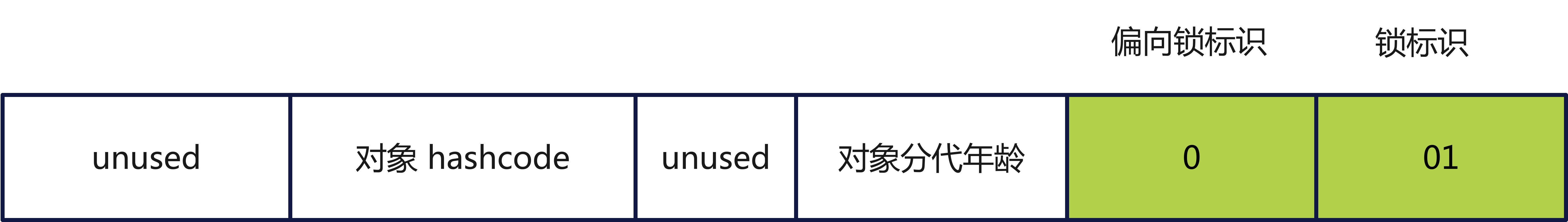 - JVM 启动后,锁资源对象直到有第一个线程访问时,它都是无锁状态,此时 Mark Word 内容如下: