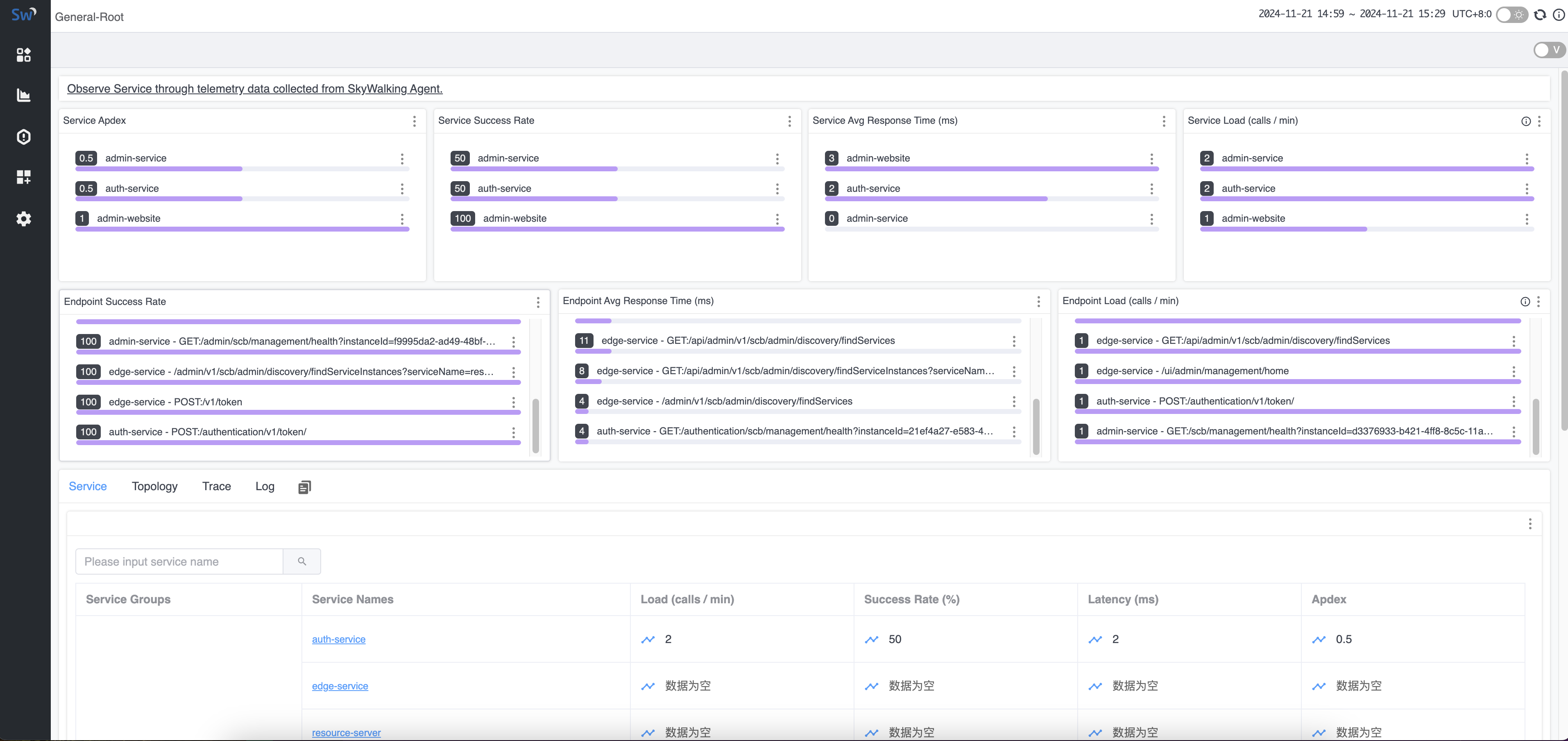 4. 查看监控数据:通过 SkyWalking 提供的 UI 控制台查看服务的性能指标和追踪数据,分析瓶颈或异常。