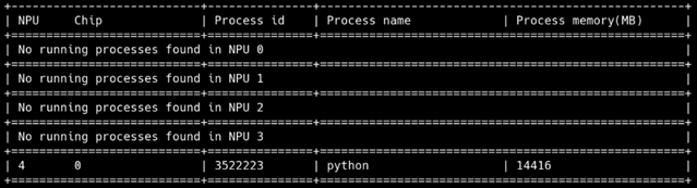 我编辑npu时指定了npu编号为4,可以看到npu:4已经在运行了。